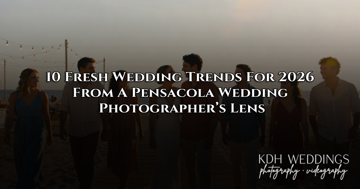 Planning a 2026 wedding along the Gulf Coast and wondering which trends are actually worth leaning into? As a Pensacola‑based wedding photographer, I’m on the front row every weekend watching which ideas look incredible in real life, feel good for couples and guests, and photograph beautifully from first look to last dance. In this guide, I’m breaking down the top 2026 wedding trends I’m seeing from non‑traditional wedding parties and coastal raw bars to guest‑experience weekends and intentional after‑parties so you can design a wedding day that feels modern now and still timeless in your photos years from today.